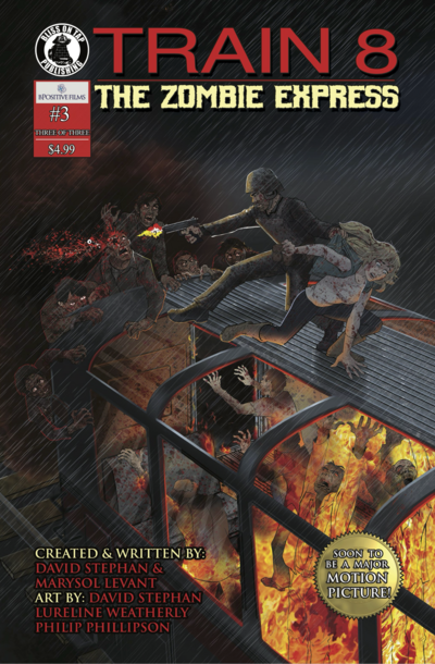 On this final ride of TRAIN 8: THE ZOMBIE EXPRESS – Issue #3 and the series climaxes with the small band of surviving passengers barricaded in the last Passenger Car against the attacking horde of Infected…while at the same time a Government Rescue team arrives giving the survivors hope and a way out from certain death…that is…if the Infected don’t reach them first.